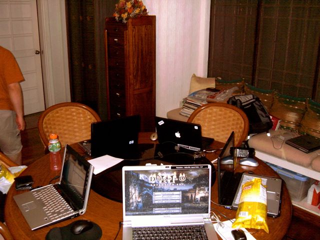 The holidays are usually devoted to a lot of gaming, especially when my friends from high school fly home from the States. This is a set up of 5 portables running on a home WiFi network – two of which are Macs. The objective was to run through Diablo II: Lord of Destruction from the start and get as far as we could.
