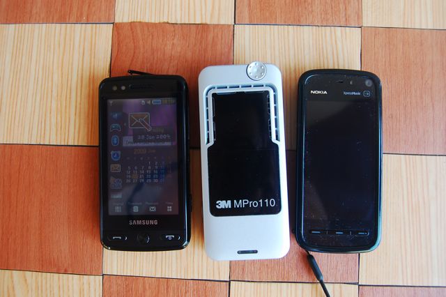 Pictured above is the MPro side by side a Nokia 5800 XpressMusic (my reviews here and here) and a Samsung Pixon M8800. As you can see … well, yeah it could very well be mistaken for a cellphone!