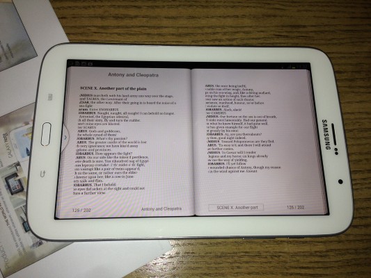 In the case of this device, size matters. It’s not small enough to shove into your pocket nor too big to be daunting at the dinner table. The “8” defines its relative size, which is actually around 7.9 inches of real estate and thin enough in accord with Samsung’s design expertise. It’s not revolutionary (nor evolutionary) — it’s simply the logical step in the journey to building the perfect tablet device.