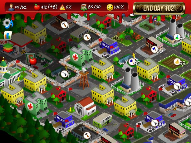 Zombie Apocalypse meets SIM City. Sort of. In this turn based game, survivors set out to reclaim and rebuild a city that has been ravaged by the Infestation. As acting Mayor of the city, you can send survivors out to hunt zombies, gather food and supplies and reclaim territories while balancing the wavering morale and confidence of your constituents.