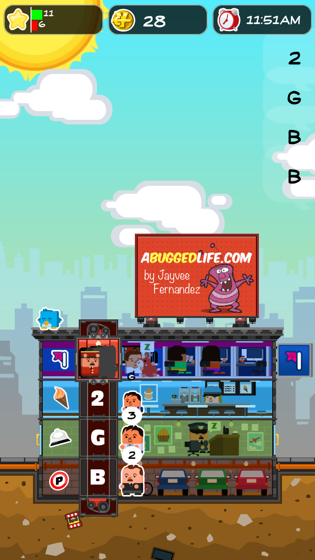 From the creator of Streetfood Tycoon, Elevator Joe is a fast-paced mobile game for Android and iOS, putting you as the commander of an … elevator. Your job is to ferry tenants to and fro in the most efficient way possible. The elevator you man can only accommodate a limited number of tenants and the hook, really, is to find the most efficient floor route to take when managing very impatient tenants. Points are awarded for high satisfaction ratings which you can use to buy upgrades such as more building floors, faster elevator movement and even more space inside the elevator.