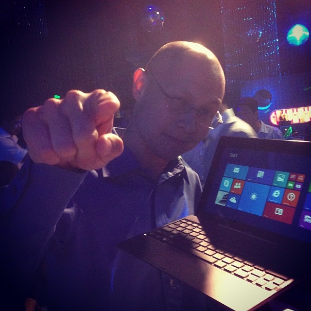 In photo is Intel’s very own Wowie Wong and dive buddy giving his pointy finger of approval to the Transformer Book T100.