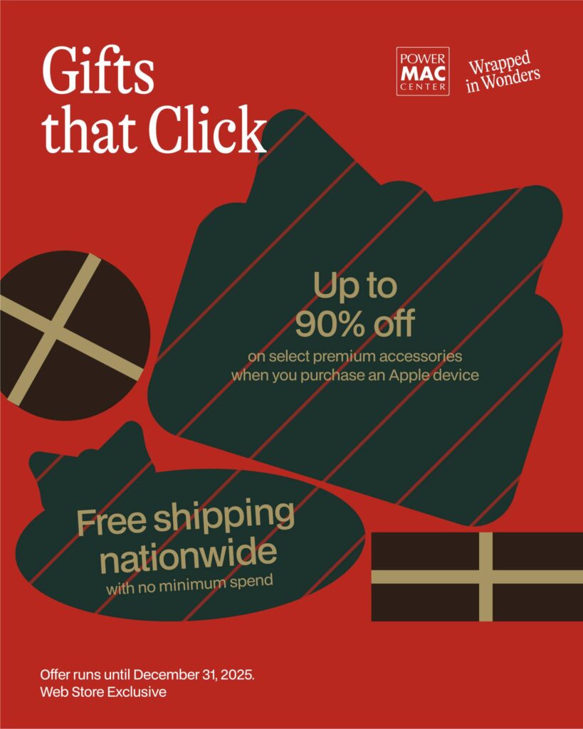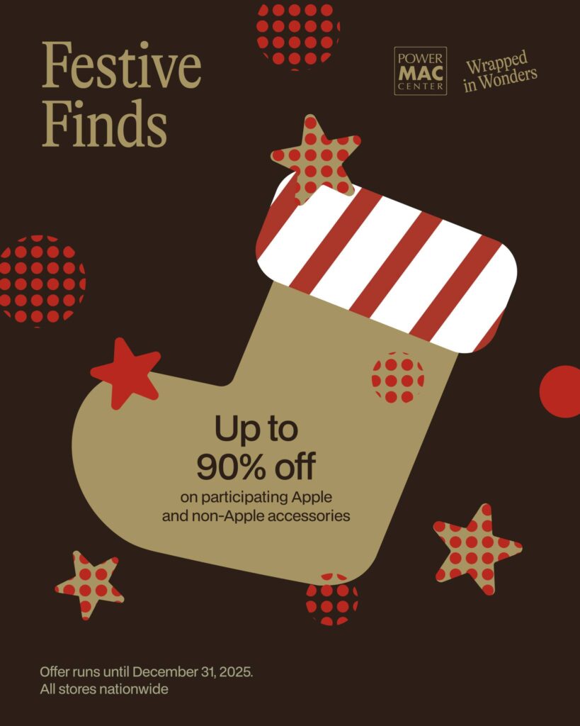 Shopping online also has its perks! Get up to 90% off on select premium accessories when you purchase an Apple device. Plus, enjoy free shipping nationwide with no minimum spend at PMC’s official Web Store <powermaccenter.com>. Promo runs from November 21 to December 31, 2025.